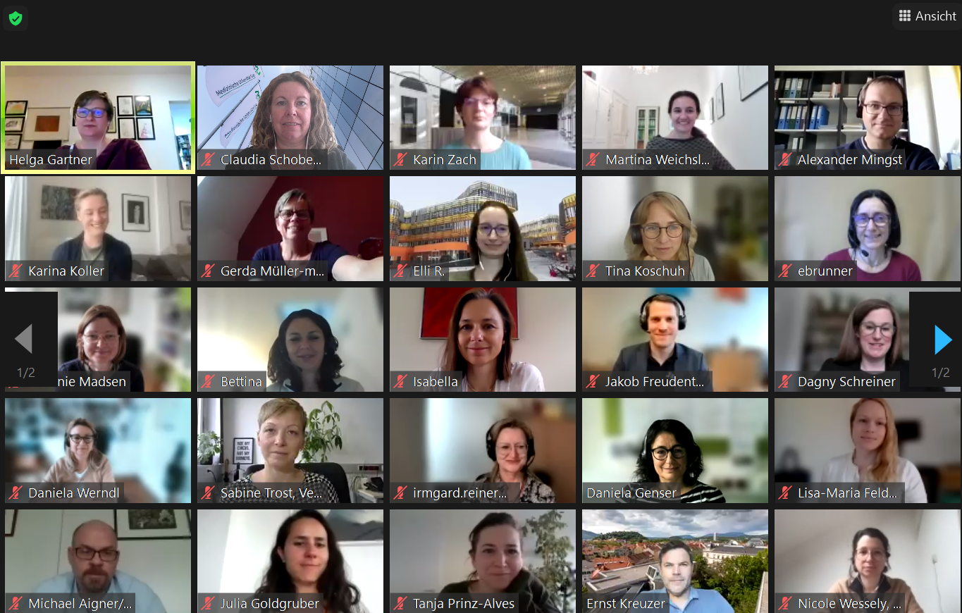 In der Arbeitsgruppe der PE präsentierte Evelin Brunner das Projekt Karrierebegleitung für das wiss. Personal (Pre-PostDocs) in Kooperation mit dem LBG CC. Im 2. Teil wurden Good practice Beispiele zu virtuellen Veranstaltungen vorgestellt, die Beispiele stammten von Evelin Brunner und Jakob Freudentaler, JKU.
