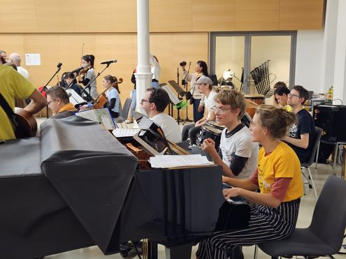 Im Zuge der Führung durch das Future Art Lab konnten die Teilnehmer:innen den seit Beginn des Wintersemesters 2020 bestehenden eindrucksvollen Neubau auf dem Campus der mdw - Universität für Musik und darstellende Kunst kennenlernen. Das von den Architekten Pichler & Traupmann entworfene Gebäude beherbergt mit dem Klangtheater, einem Arthouse-Kino, einem Aufnahme- und einem Konzertsaal mit 100 Plätzen vier Säle die technisch, akustisch und atmosphärisch alle Stücke spielen.